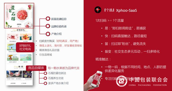 今天分享的案例就是在“物联网电子商务”概念上引申出来的“个选-物联网电子商务与数字服务平台”。该平台为企业/行业提供相应的服务升级策略与技术支持,已经与国内几家头部包装企业陆续达成战略合作,帮助外包装生产企业进行服务升级,为其所有客户提供“商品外包装数字化增值业务(SaaS服务)”。其业务以“外包装二维码(一物一码等)”为载体,除了与企业内部ERP系统对接进行生产及仓储管控外,也提供了丰富的互联网营销手段、玩法,吸引消费者扫码、下单等。